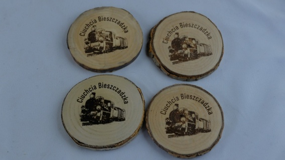 Zestaw 4 magnesów pamiątkowych na podstawie drewnianej. Motyw Ciuchcia Bieszczadzka. Rozmiar grafiki 55 mm x 55 m . Krążek około 65 mm. Z uwagi na to że magnesy robine są n znaturalnych materiałow , mogą się nieznacznie róznić odcieniem i kształtem.